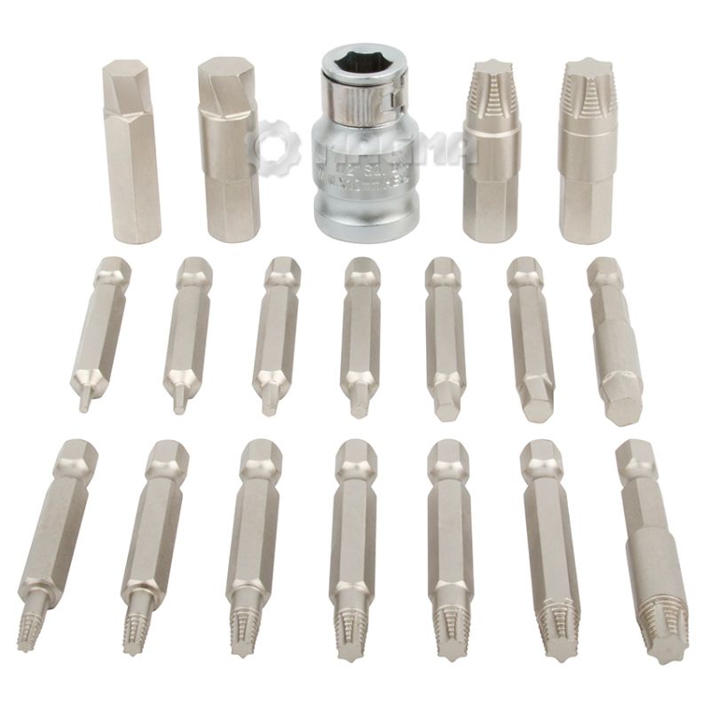 This 19-piece set includes a wide range of extractor bits to accommodate various sizes of Torx and Hex fittings. Whether you're working on automotive repairs, machinery maintenance, or DIY projects, this set has you covered.