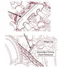 Used to hold the camshafts in the TDS position and retain the tensioner in the compressed position.
