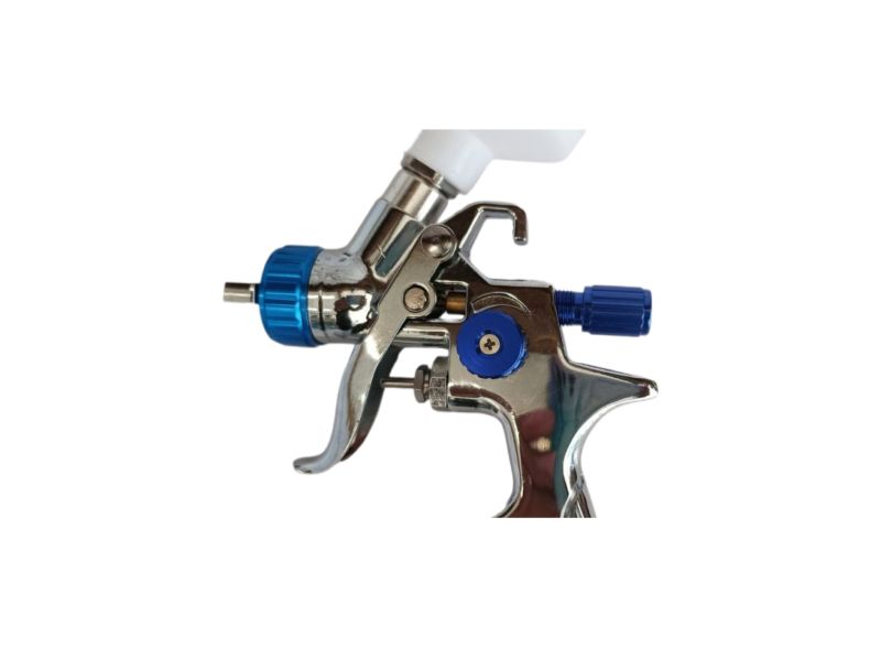 This HVLP gravity-type spray gun is designed for all-purpose applications in the automotive and industry sectors. It features a stainless steel nozzle and needle for durability and precision.