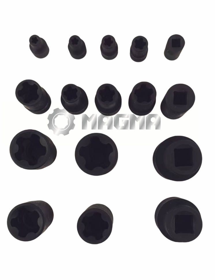 - Διαστάσεις καρυδάκια: Κάθε καρυδάκι έχει σχεδιαστεί για ακρίβεια, εξασφαλίζοντας μια ασφαλή εφαρμογή και μειώνοντας τον κίνδυνο στρογγυλοποίησης των μπουλονιών.